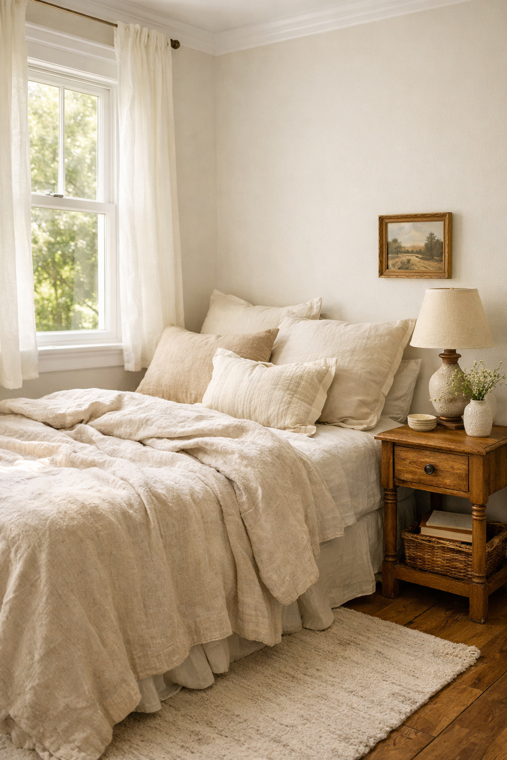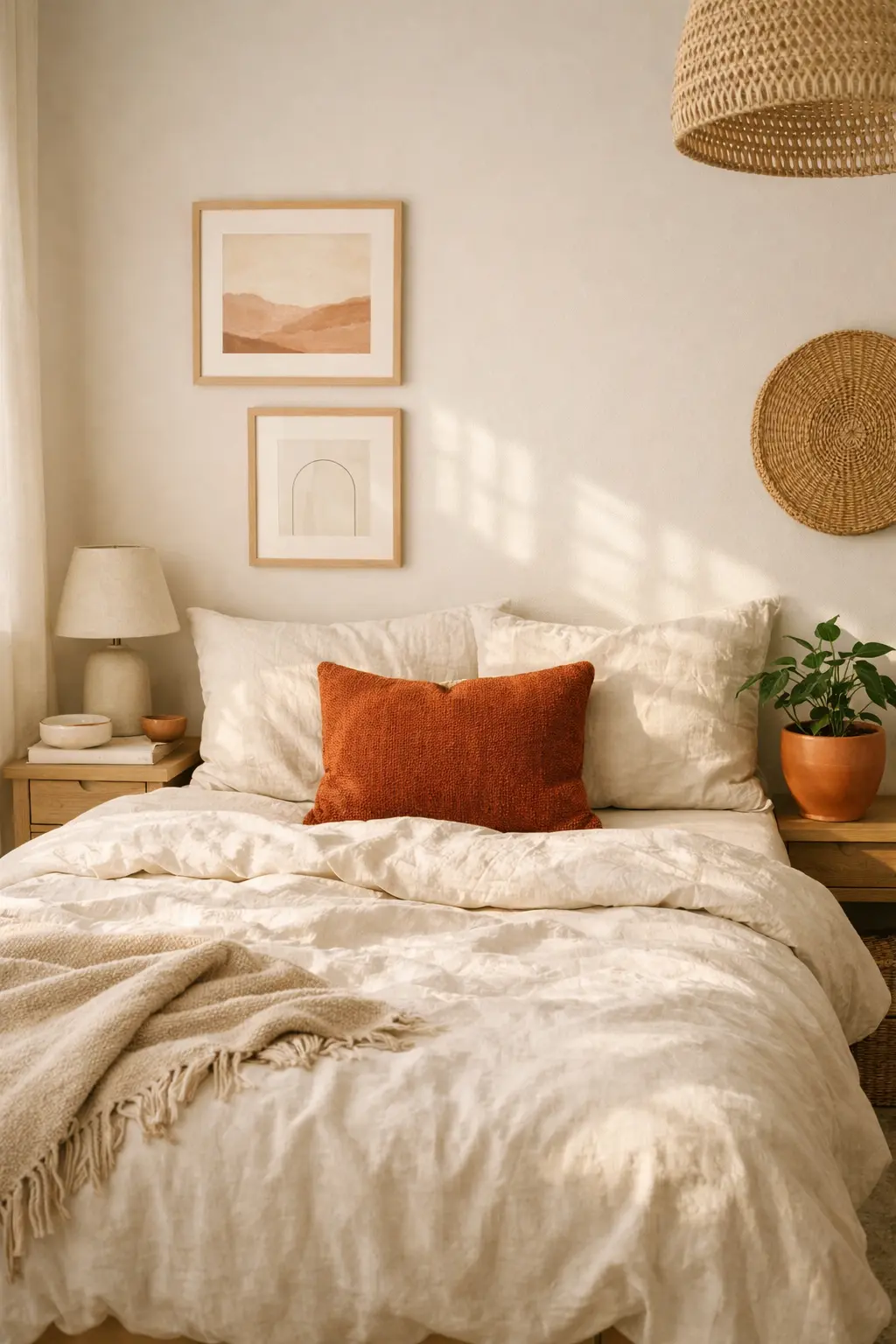 A consistent color palette makes the room feel calm and pulled together. Choose a neutral base and add one or two accent colors through pillows, a throw, or small decor items.