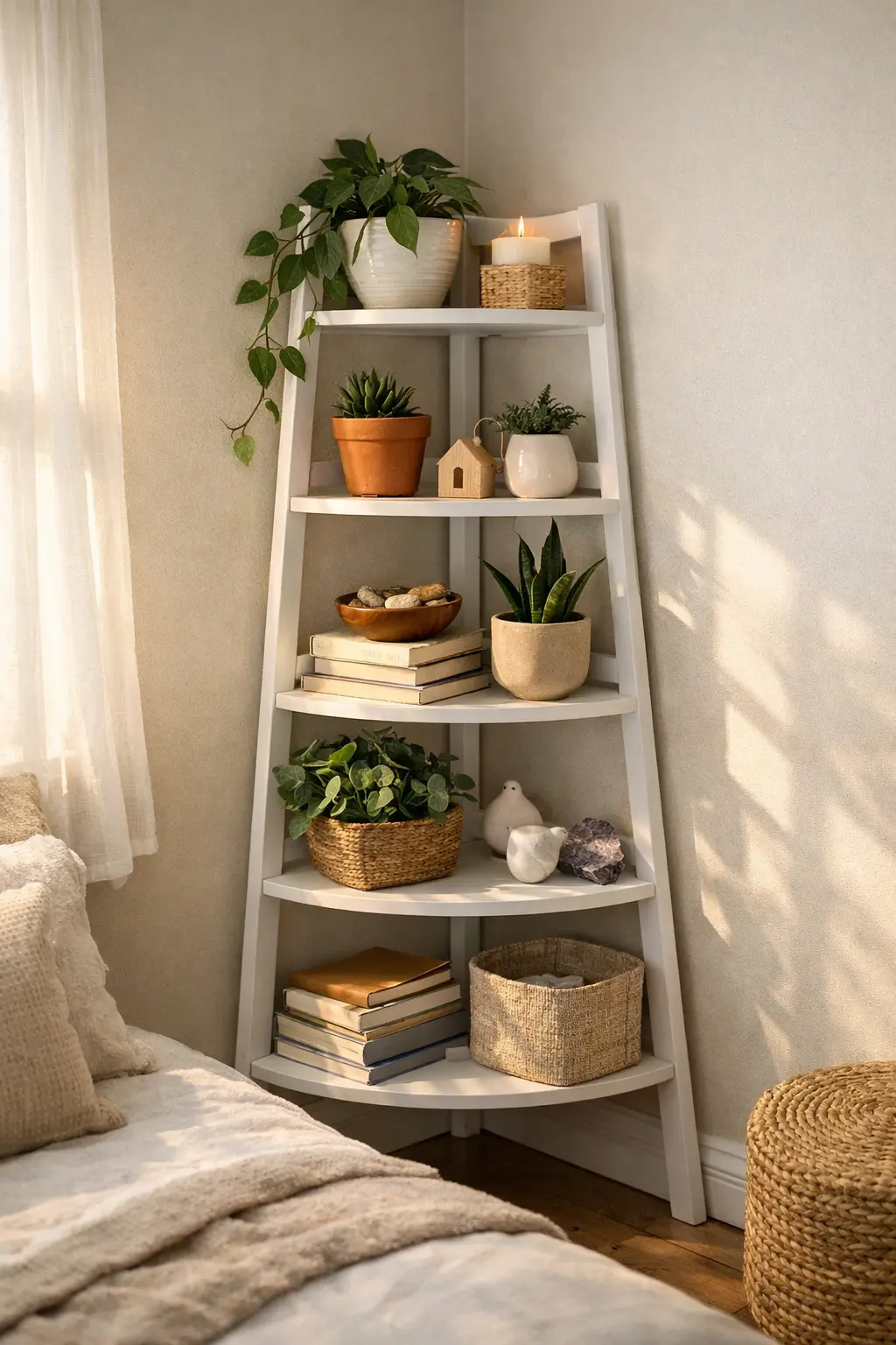 You can use it for plants, books, candles, or small decor. Corner units take up very little floor space but add a lot of visual interest.