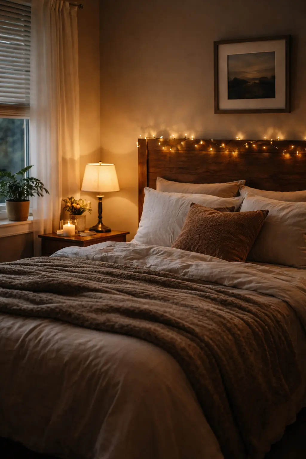 Good lighting can completely change how big a room feels. Do not rely on just one overhead light. Layer your lighting with a bedside lamp, some string lights, or a floor lamp.