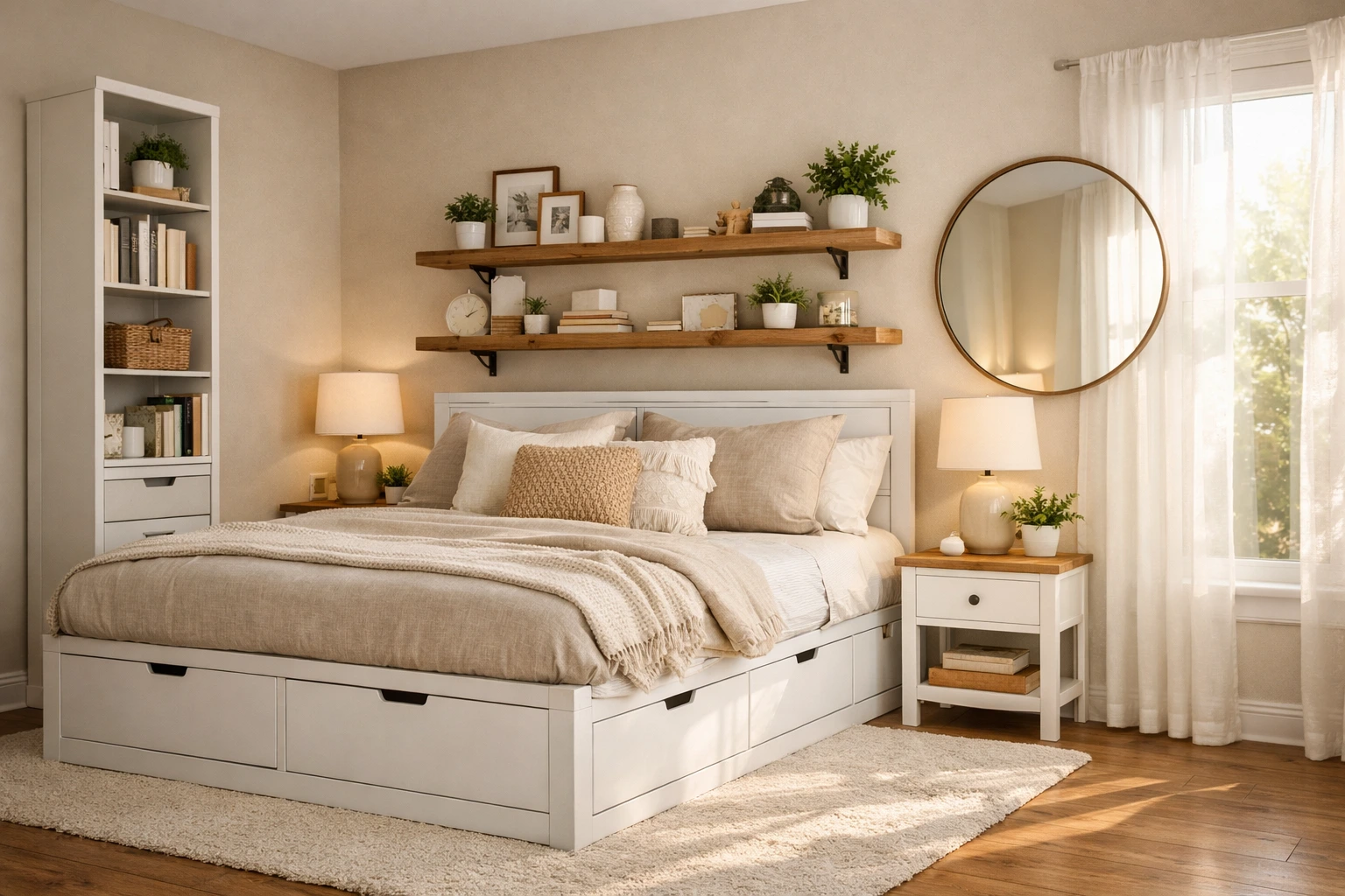 A storage bed is one of the best things you can buy for a small bedroom. It has drawers underneath or a lift-up platform that hides extra space.