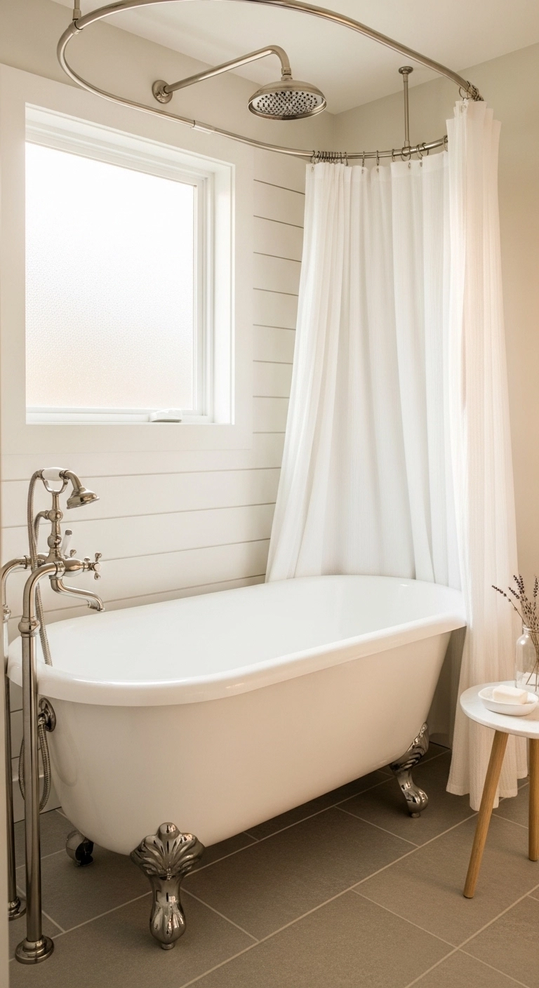 Nothing in farmhouse bathroom decor is more iconic or more beautiful than a freestanding clawfoot bathtub. It instantly becomes the centerpiece of the entire room and gives the space a sense of history, charm, and elegance that is impossible to replicate with any other fixture. A classic white clawfoot tub with brushed nickel or oil rubbed bronze feet looks absolutely stunning in a farmhouse style bathroom.