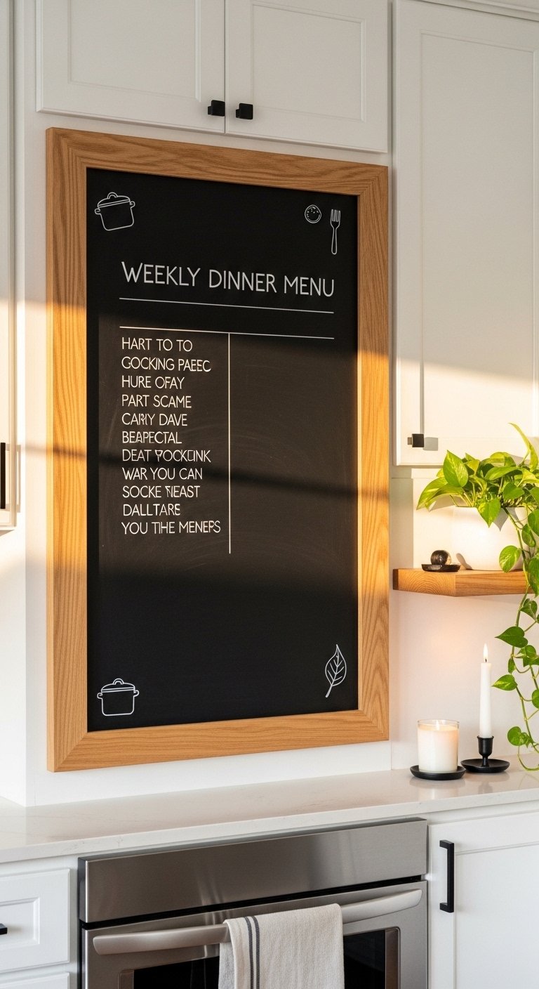 Choose a large size chalkboard for the most dramatic visual impact. A chalkboard that is at least eighteen by twenty four inches makes a strong statement on a kitchen wall and gives you plenty of room to write and illustrate freely. Hang it in a prominent spot like the wall beside the refrigerator or above the kitchen table. This is one of those modern farmhouse kitchen decor ideas that feels both nostalgic and completely current at the same time.