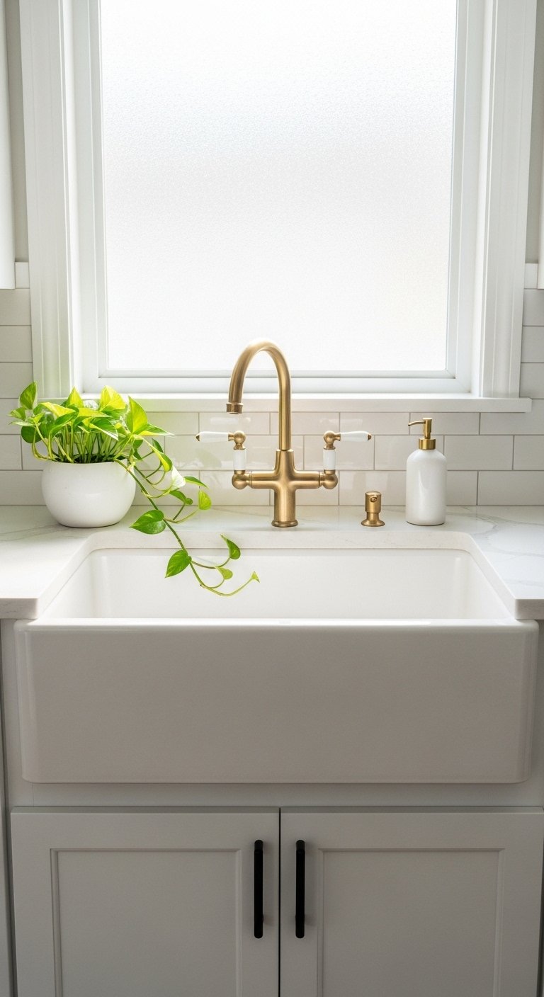 A white fireclay farmhouse sink paired with a tall brushed gold or oil rubbed bronze bridge faucet is one of the most stunning and timeless combinations in all of modern farmhouse kitchen decor ideas. The farmhouse sink is also incredibly practical because its extra depth makes washing large pots, pans, and baking sheets significantly easier. This is one investment in your kitchen that pays back in both beauty and function every single day you use it.