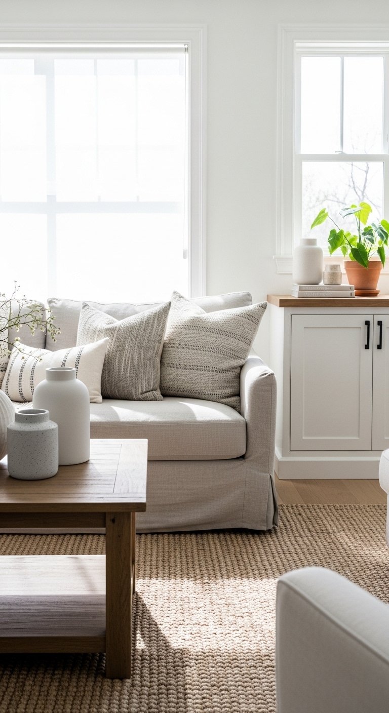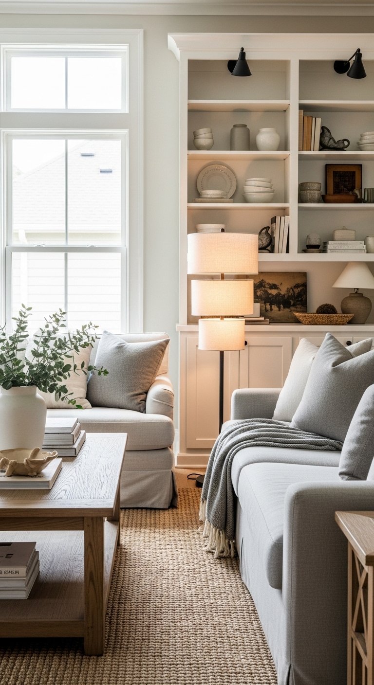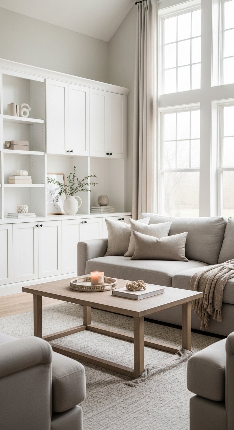Layering textures keeps the room interesting without making it busy. A knit pillow, a linen curtain, and a woven rug can all work together within a neutral living room palette. This subtly creates depth. When texture is balanced well, the room feels cozy but still clean.