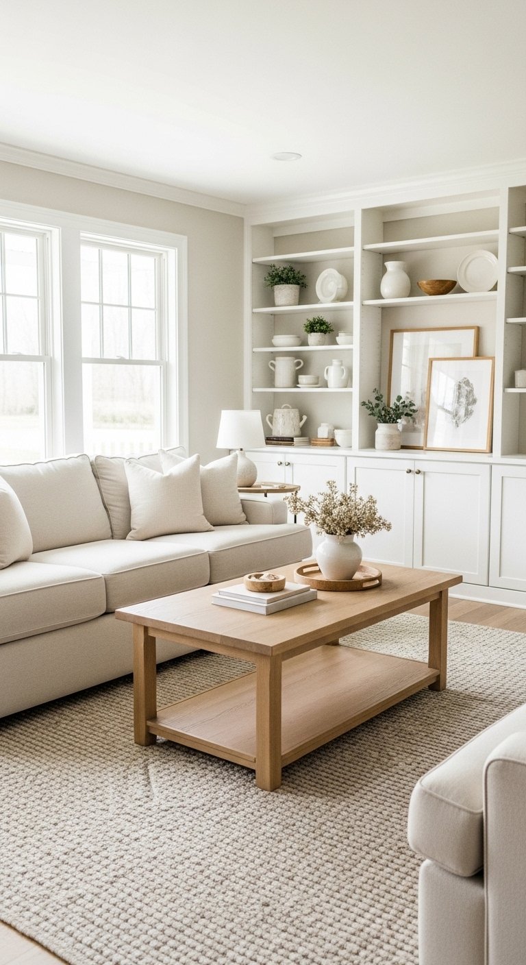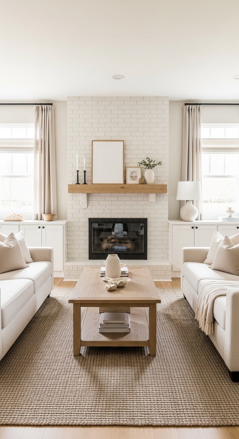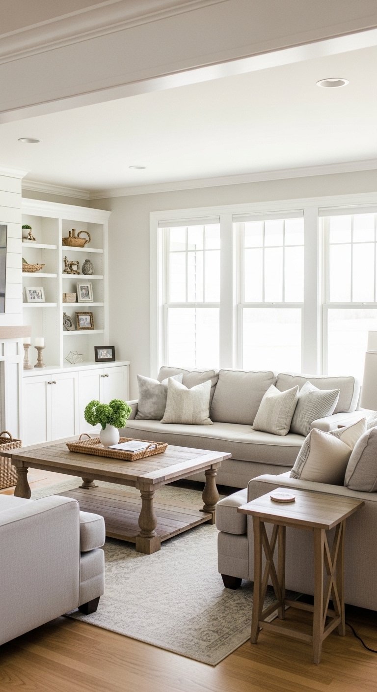 Layering textures keeps the room interesting without making it busy. A knit pillow, a linen curtain, and a woven rug can all work together within a neutral living room palette. This subtly creates depth. When texture is balanced well, the room feels cozy but still clean.