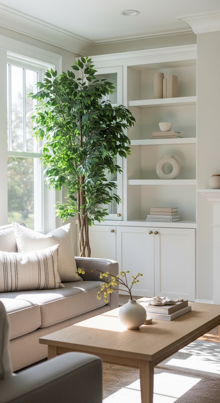Greenery adds color without needing bold decor. Choose low-maintenance plants that suit your light conditions. Even faux plants can work if styled carefully. A touch of green makes the room feel fresh and welcoming.