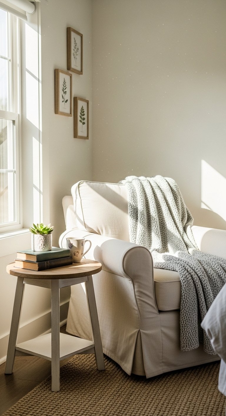 If your room has space, add a small reading chair in one corner. Pair it with a soft throw and a small table.