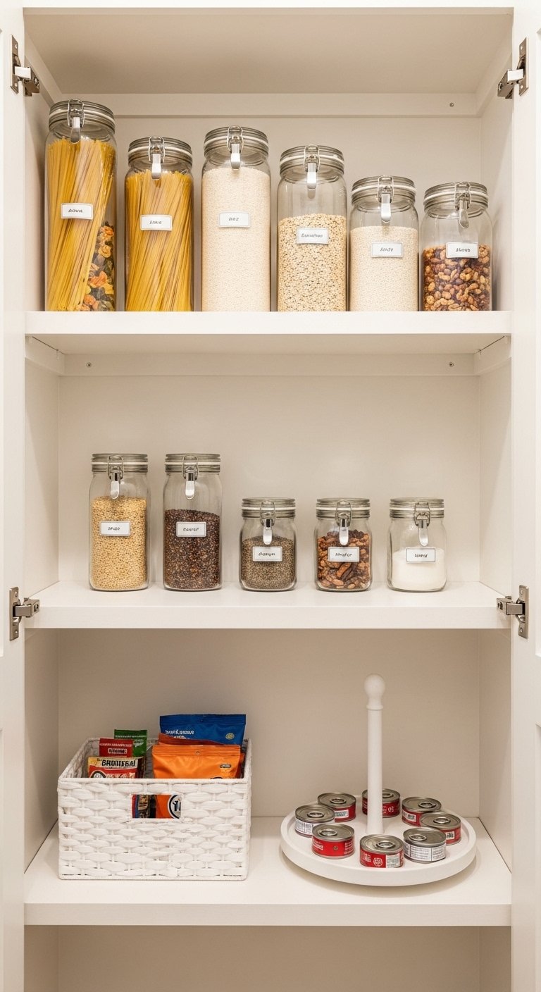 A well organized pantry is one of the most satisfying and functional improvements you can make to your kitchen and it does not require any renovation at all. Decanting your dry goods into clear glass or white ceramic containers, using matching labels, and arranging everything by category makes your pantry look like a page from a home organization magazine while also making cooking faster and easier every single day.