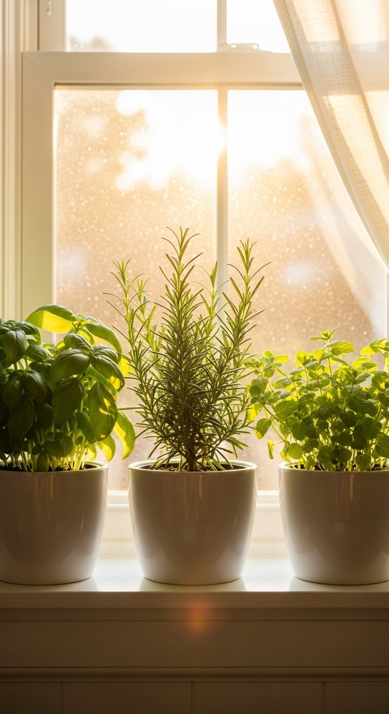Growing a small collection of fresh herbs in your kitchen is one of the most rewarding and practical cozy kitchen decorating tips you will ever follow. A row of two or three small potted herbs like basil, rosemary, and mint in matching white ceramic pots on your windowsill or counter adds beautiful living greenery to the kitchen, fills the room with a fresh and natural fragrance, and gives you fresh ingredients to cook with every single day completely for free.
