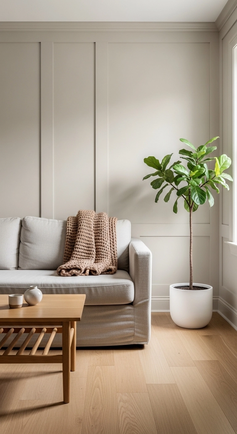 You do not need a lot of plants to make a difference. Even one or two well-placed green plants can completely change the energy of a room. Choose low-maintenance varieties like a snake plant, pothos, or fiddle leaf fig so they stay looking fresh without a lot of work. Adding greenery is one of the most budget-friendly cozy small living room ideas, and it makes any space feel warmer, fresher, and more welcoming.